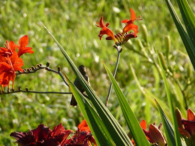 Beautiful stitching along with all your beautiful blooms. I've been trying for years to get a photo of a hummingbird.